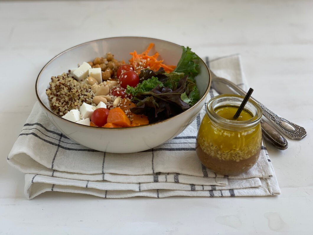 Empiezan a estar un poco más frío los días, lo que nos anuncia que se nos está acercando el otoño. Hoy les traigo un plato que me encanta, estos pocillos con algún cereal, verduras y frutos secos. Por supuesto, que siempre acompañado de un aderezo rico. Esta vez hice usando el nuevo té verde con matcha de Supremo, y no saben lo rico que quedó.