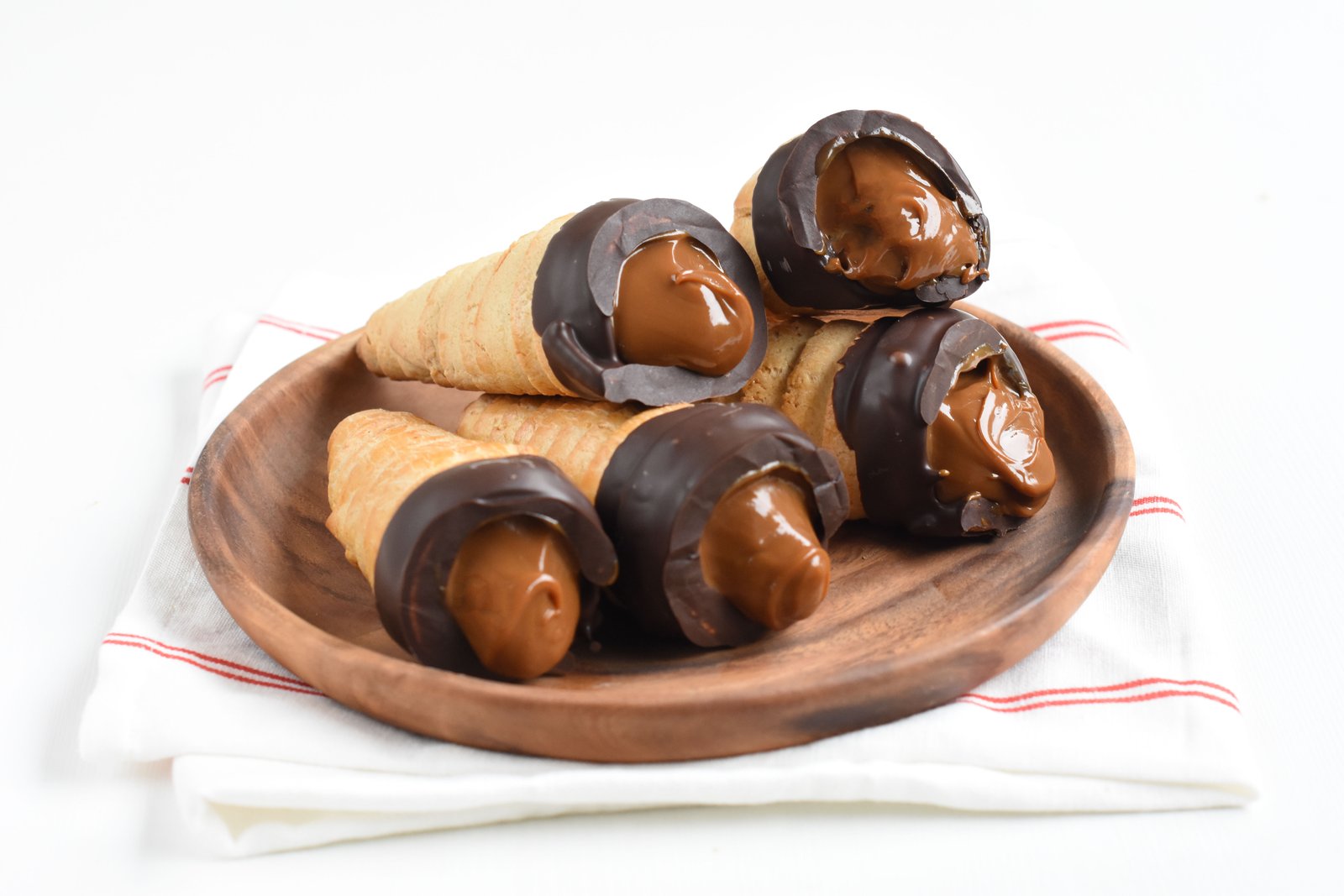 • Dejar enfriar y luego rellenar con manjar, asegurándose que el manjar llegue al final del cono. Servir y disfrutar
