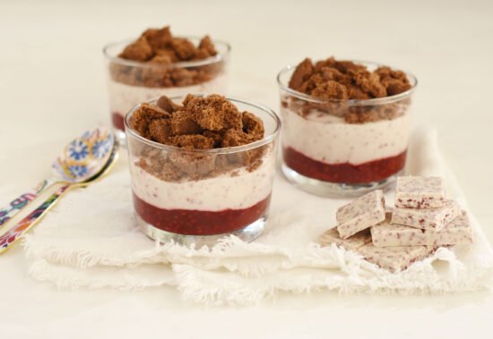 VASITOS DE CHOCOLATE BLANCO Y FRAMBUESAS