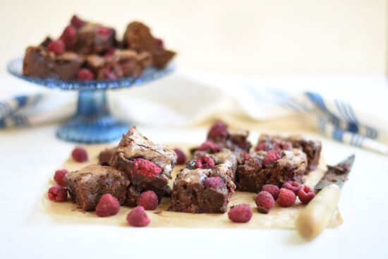 BROWNIES DENSAMENTE ACHOCOLATADOS Y FRAMBUESAS