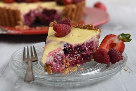 TARTA DE BERRIES CON CUBIERTA DE YOGURT Y CHOCOLATE BLANCO