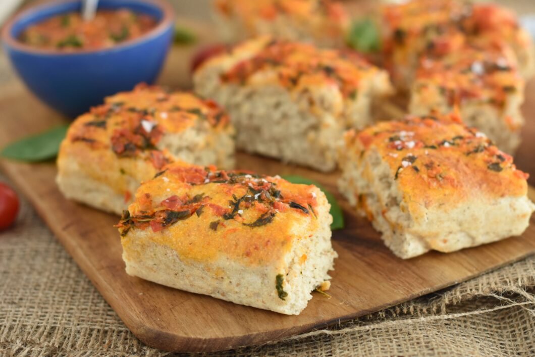 FOCACCIA DE QUESO CON PESTO DE TOMATES FRESCOS
