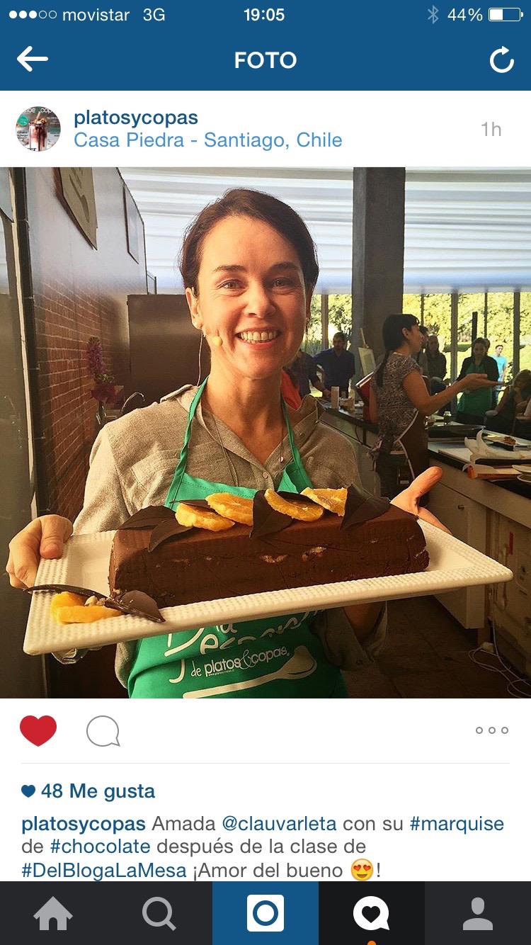 Pili, que no vive acá, nos mandó un video con una rica receta de pisco sour al romero. Polín, deleito con unas brochetas de polenta como entradas, una idea novedosa y fácil de empezar una rica comida. Luego Barbara siguió con el plato de fondo que consistió en un filete de chancho con salsa de frambuesas y chiplote, acompañado con una papas al horno; una combinación de sabores maravillosa. Y por último, dulcinea (por supuesto) preparó el postre. Decidí hacer una marquise de chocolate con naranjas, simplemente porque es uno de los sabores que más me gustan.