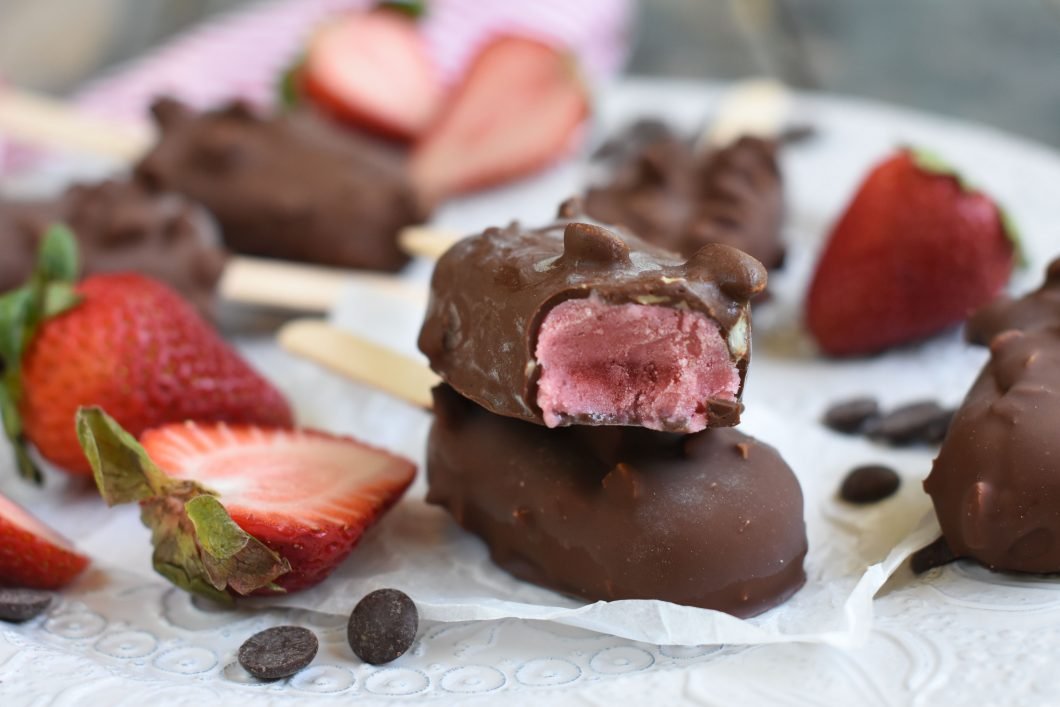 PALETAS HELADAS DE FRUTILLAS Y CHOCOLATE
