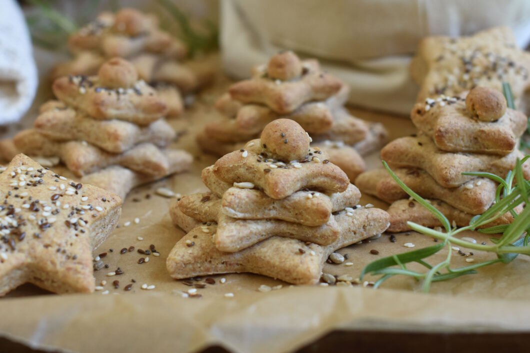 - Pintar las estrellas y pinos, levemente con aceite de oliva y luego espolvorear con semillas.