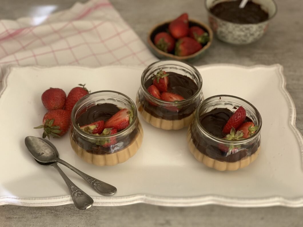 - Para la capa de chocolate (salsa espesa), mezclar la azúcar flor con la crema. Derretir la mantequilla en una olla mediana a fuego bajo. Agregar el chocolate en polvo y revolver hasta que quede como una crema. Agregar la crema de a poco, revolviendo hasta que la mezcla haya espesado. Esperar que la salsa se enfríe un poco y poner sobre la capa de manjar. Decorar con frutillas o naranja o lo que quieran y disfrutar.