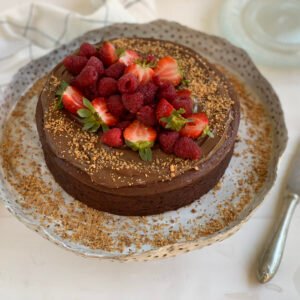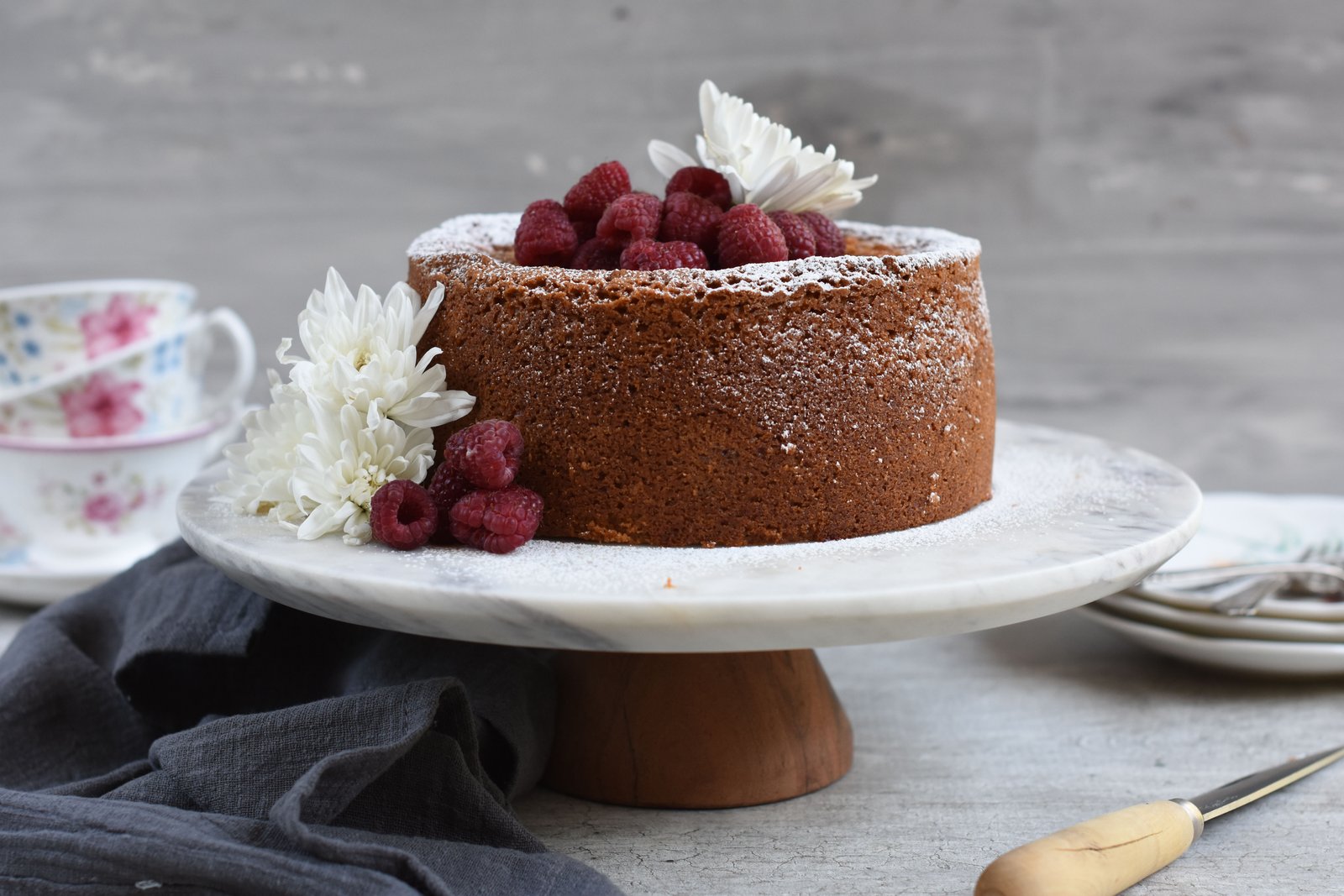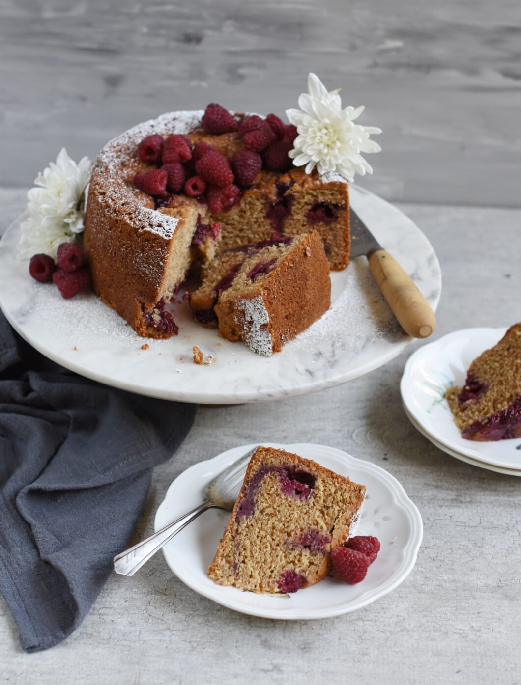 • Dejar enfriar 15 minutos y desmoldar. Servir espolvoreado con azúcar flor si desean y decorar con frambuesas y flores.