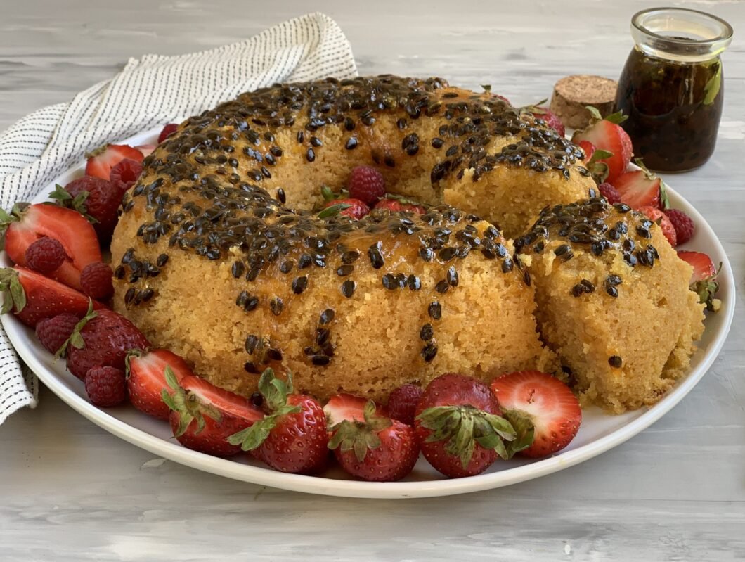 Me encanta el maracuyá, y la ocupo mucho para hacer postres. Hoy la uso para un exquisito queque. La salsa le da un toque ideal para completar ese sabor cítrico. Pueden acompañar el queque con frutillas y es húmedo que les puede servir hasta de postre. Yo le quería poner semillas de amapola, pero se me olvido, pero si Uds. le quieren poner, creo que es una gran adición a la preparación. Esta receta fue hecha para Té Supremo, usando su pirámide de té blanco tropical