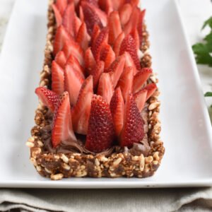 • Decorar la tarta con las frutillas horneadas o frescas.