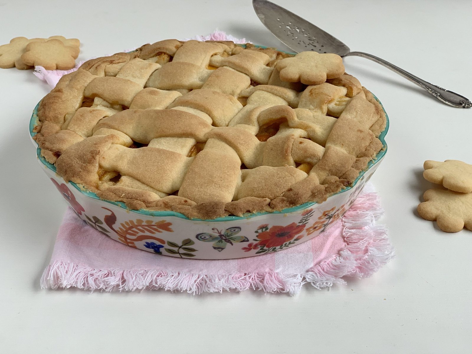 Les dije que les iba a contar la historia de esta tarta. Hace más de 23 años, “la Blanquita” nos ayuda en nuestra casa, ella es una más de mi familia y una abuela más de mis hijos. No la hemos visto por meses por la pandemia, porque se tiene que cuidar mucho. La Cata siempre ha pedido de torta de cumpleaños una tarta de manzanas de la Blanquita. Ella siempre se la ha hecho con el más grande cariño. Este año, por las circunstancias, la tuve que hacer yo. Estaba tan nerviosa que la hice dos veces para que fuera lo más cercana (en una se me había olvidado la mermelada y la puse arriba y no me gustó).