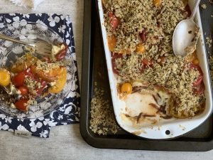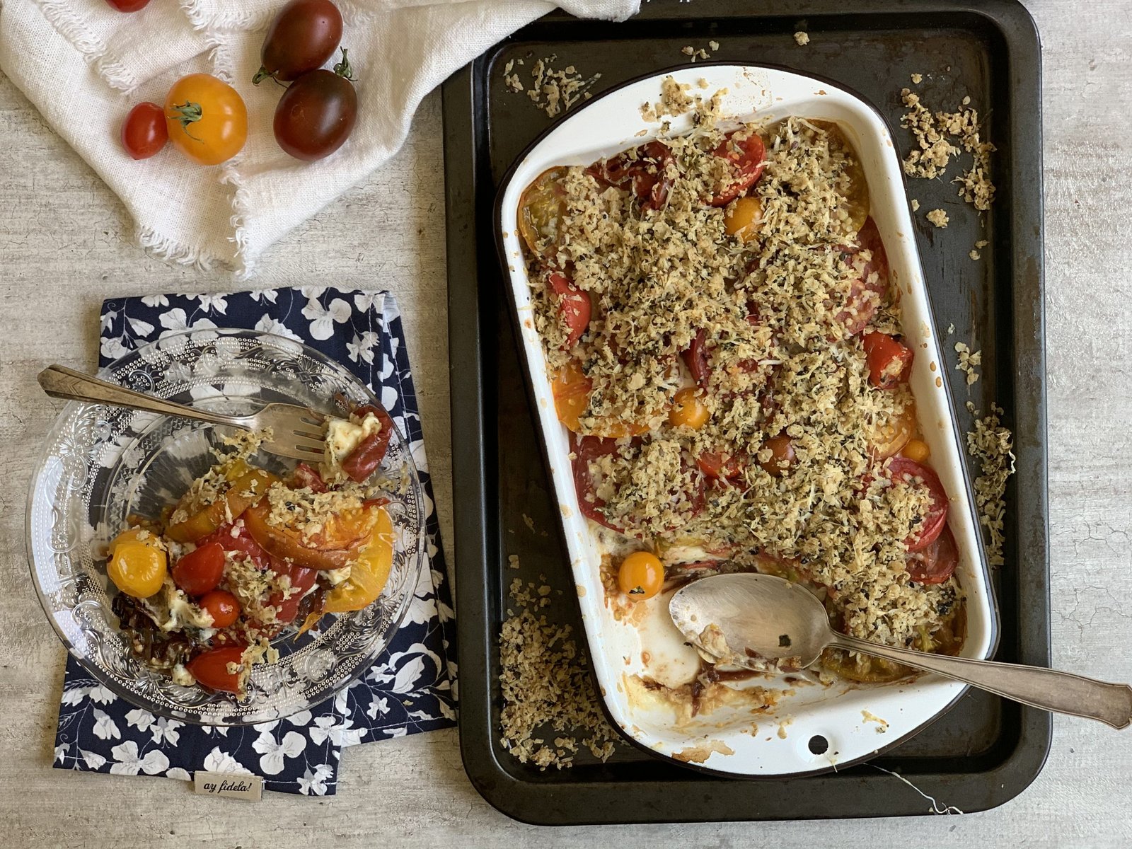 Amo los tomates cuando están sabrosos. Me gustan naturales, en ensalada o comerlos con pan como lo hacía cuando niña. Pero también me gusta mucho preparar recetas con ellos, ya sea como acompañamiento o como un plato vegetariano rico. Estos tomates quedaron deliciosos, es como una especie de pizza en sabor, pero sin la masa y el crocante es muy rico. Pueden cambiar la avena por pan rallado, pero sin tienen avena sin gluten es una buena opción para los con alergia o intolerantes.